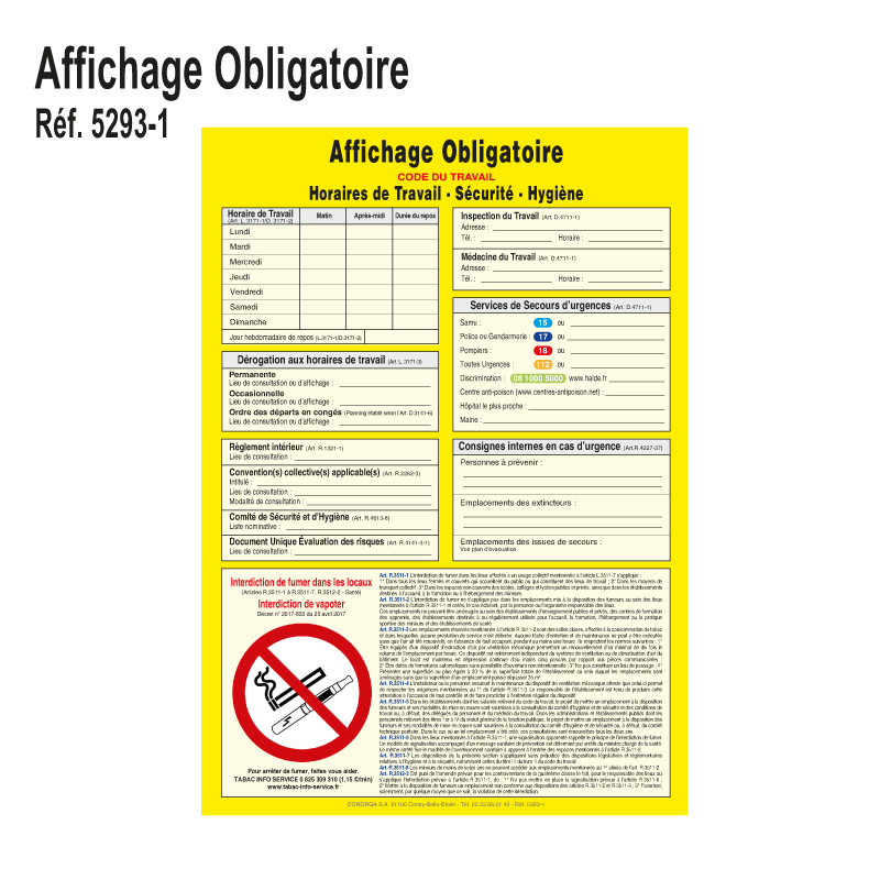 Affichage Obligatoire établi en respect de nombreuses lois.