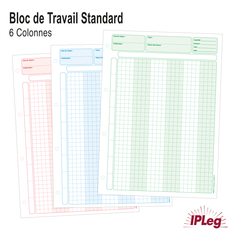 Blocs de 50 feuilles de Travail " 6 colonnes".