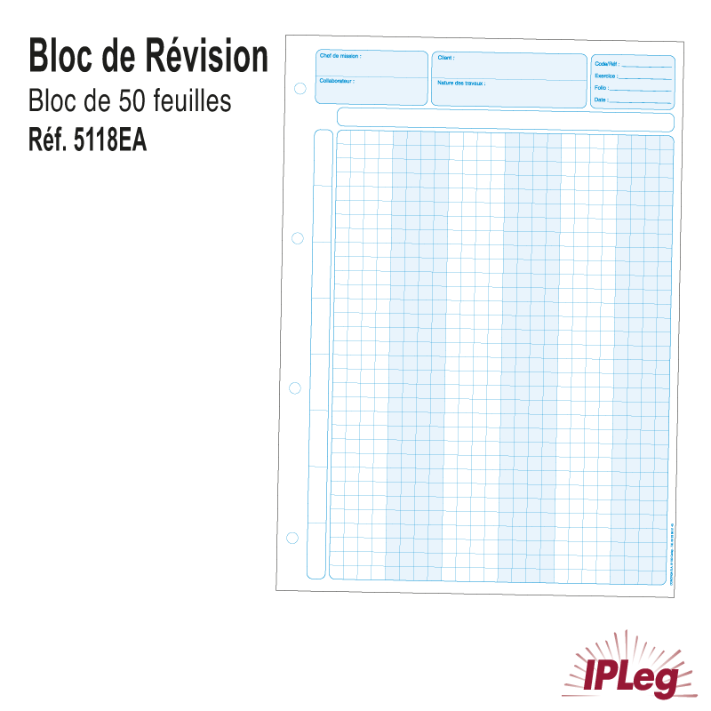 Composition | Blocs de 50 feuilles avec perforation 4 trous. |