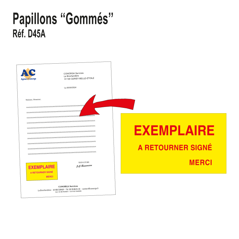 Papillons en papier gommé pour simplifier vos communications avec vos clients. Le papier gommé a l'avantage de se coller partiellement et de ne pas se décoller accidentellement.